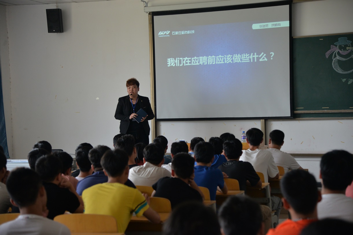 为更好地推进职业教育和全面提升职业技能,贯彻执行国家大力发展职业教育相关政策,为帮助同学们了解所学专业及其就业前景,使同学们了解到职业规划的重要性,5月9日下午2点30分,在教学楼C座107教室我院开展2017年职业教育活动周活动---学生职业生涯规划指导讲座。参加此次讲座的有学院招生就业处处长任立军,计算机信息工程系副主任马文静、团总支书记甄力维,以及石家庄标向科技公司董事长孙红霞、人力资源部袁经理、宣讲导师付琛以及计算机信息工程系2015级全体学生。