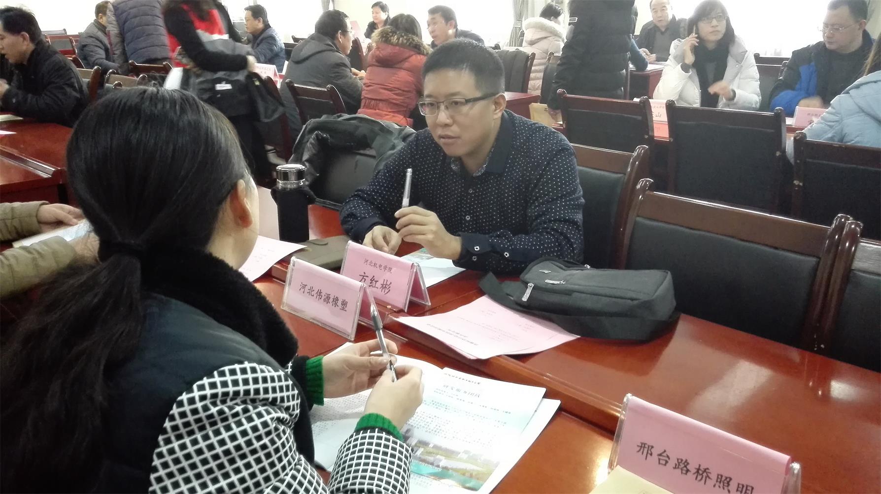 本次会议以“加强京邢科技协作,助力经济绿色崛起”为主题,邢台市相关企业,北京和河北的科技社团、科研机构、高等院校参加了对接洽谈会。我院在机械设计与智能制造、自动化技术、软件开发技术、新能源汽车技术等方面与相关企业进行了深入沟通,分别与河北创立机电科技有限公司、河北伟源橡塑设备有限公司、河北中斗导航设备科技有限公司、邢台一生水卫浴科技股份有限公司就技术升级新产品开发、橡胶机械自动控制、物流平台后期信息处理数据挖掘以及市场决策、智能节水S弯道排污技术改进等,达成4项合作意向。