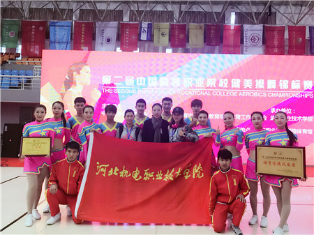 此次比赛由中国大学生体育协会主办、中国大学生体育协会职责教育学校体育工作委员会协办,共有来自全国21个省市的26支代表队、400名参赛选手参加了比赛。学院健美操队在体育工作部部长张平担任领队,在周瑞和王子頔两位教练带领下,充分展示了河北机电学子的风采和团结拼搏的精神,最终取得可喜成绩。(体育工作部:王子頔)。