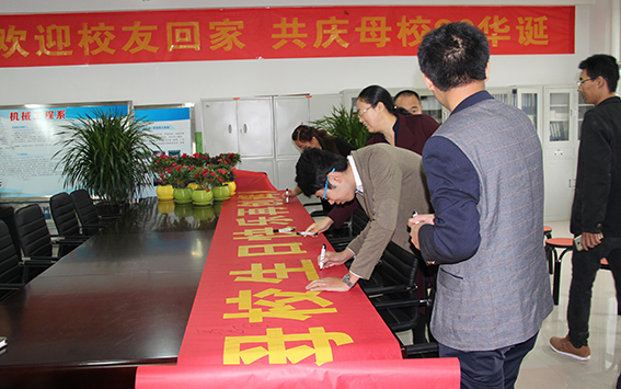 张兆隆副院长代表学院党政领导对校友们返校共庆母校60岁生日表示了诚挚的欢迎。向与会校友们介绍了机电风风雨雨60年的发展历程,经过机电人坚持不懈的努力,大胆创新,发展至今,在软、硬件建设方面快速发展,综合实力不断增强,现已形成专科为主体,共建本科,多种办学模式并存的普通高等职业院校。机电为我,我为机电,河北机电永远是我们共同的家,希望校友们凝聚人气,为母校发展出力,共建机电美丽家园。