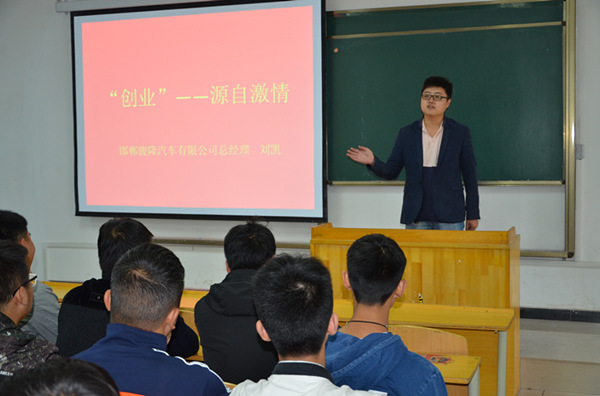 座谈会结束后,各位校友在汽车工程系领导和老师的陪同下参观了汽车系实训基地,同时,两位优秀的校友向汽车系13级即将毕业的学生做了历时两个小时的精彩报告,使现场师生听得意犹未尽,受益匪浅,掌声一阵阵响起。