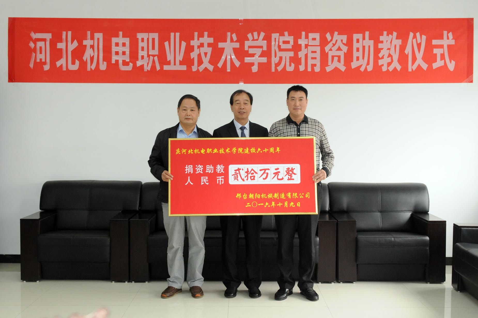 邢台朝阳机械制造有限责任公司董事长刘计春向学院捐赠了20万元。