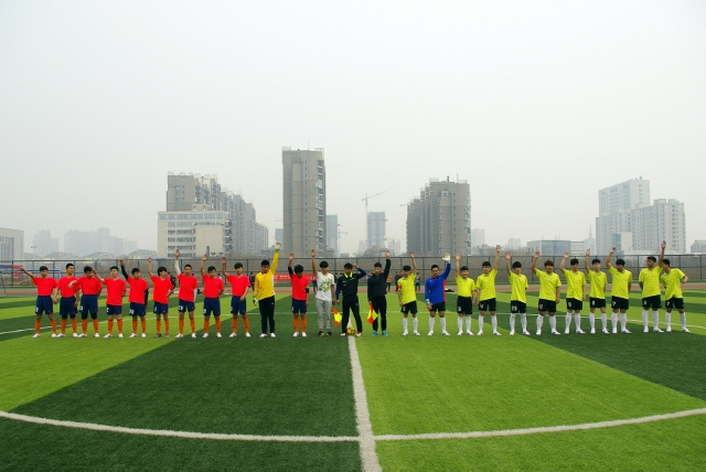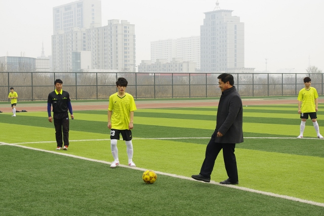 3月23日 下午两点, 我院2016年“HOPE杯”校园足球联赛在学院足球场开幕。学院领导高度重视本次比赛,副院长赵国增、张兆隆出席开幕式,开幕式由学生工作部部长周卫忠主持,机械工程系党总支书记冯子庆、材料工程系党总支书记张银海、人文与管理工程系党总支书记李成革、电气工程系党总支书记贾晓东、汽车工程系党总支书记耿晓东、计算机信息工程系党总支书记贺明、体育工作部部长张平、各系参赛队员、教练员、裁判员及近千名学生共同见证了这一时刻。赵国增副院长为开幕式致辞,并为本届联赛开球。
