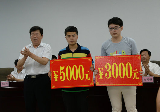党委书记菅新月为路丛瑜、李雪帅同学颁发奖金