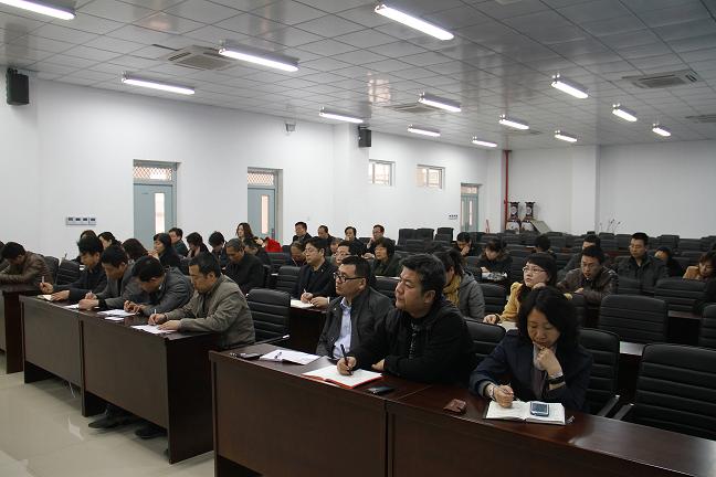 2014年3月17日 下午,学院召开2014年度教学科研工作布置会。副院长张兆隆、曹振军出席会议,各系部主任、副主任、教研室主任、专业带头人、教学干事、实验室主任;实习实训中心主任、副主任、车间负责人;教务处和高职所全体成员参加了会议。会议由教务处长赵双全主持。
