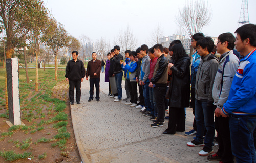 本次活动是为了贯彻中宣部、中央文明办、教育部、共青团中央联合下发的《关于进一步加强和改进大学生社会实践的意见》要求,根据思政部2013年工作计划进行的。为保证活动顺利开展,思政部做了充分的准备工作,提前与张家小院主人进行了联系,购买了慰问品,印发了学习材料,组织教师和学生进行了学习。带着寻找邢台第一位共产党员和最早党组织事迹的问题,思政部教师带领学生参观了革命烈士纪念园——仲毅园。在仲毅园张仲毅塑像前,老师和同学们认真倾听了思政部周景辉和尹登海二位老师对中国共产党邢台第一位共产党员和第一个支部创始人张仲毅同志和其家人的事迹简介,瞻仰了张仲毅墓,同学们都被先烈们一心为革命的事迹所感动。