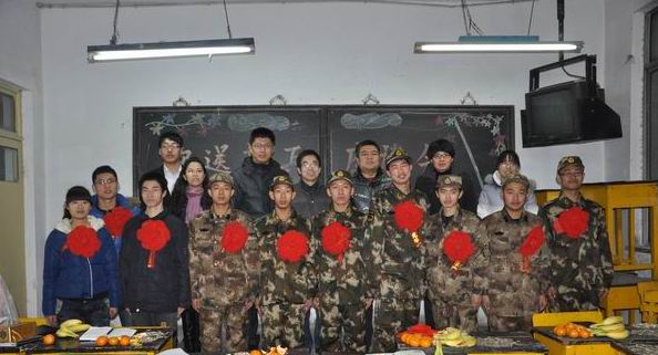 此次会上,老师们还向新兵们佩戴光荣花献上祝福并赠送纪念品。会后全体老师与新兵合影留念。