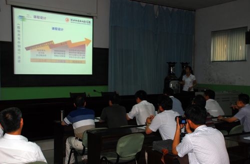 示范说课教师是从学院5月19日-20日说课活动中选出的三位教师:材料工程系李化芳、现代制造系张勇和机械工程系张晓芳。他们就所说课程分别详细阐述一门课程在专业课程体系中的定位、作用与性质,课程设计的理念与思路,比较透彻地分析了课程内容的选取,充分细致地分析了学情特点,精心设计了教学方法与手段,展示了教学团队、实践教学条件和教学效果。说课老师在说课示范中情绪饱满,表达流畅,富有激情,感染力强,课件界面清晰,动静相宜,相得益彰。三位教师的说课风格迥异却同样精彩纷呈,为全体教师起到了很好的示范作用。
