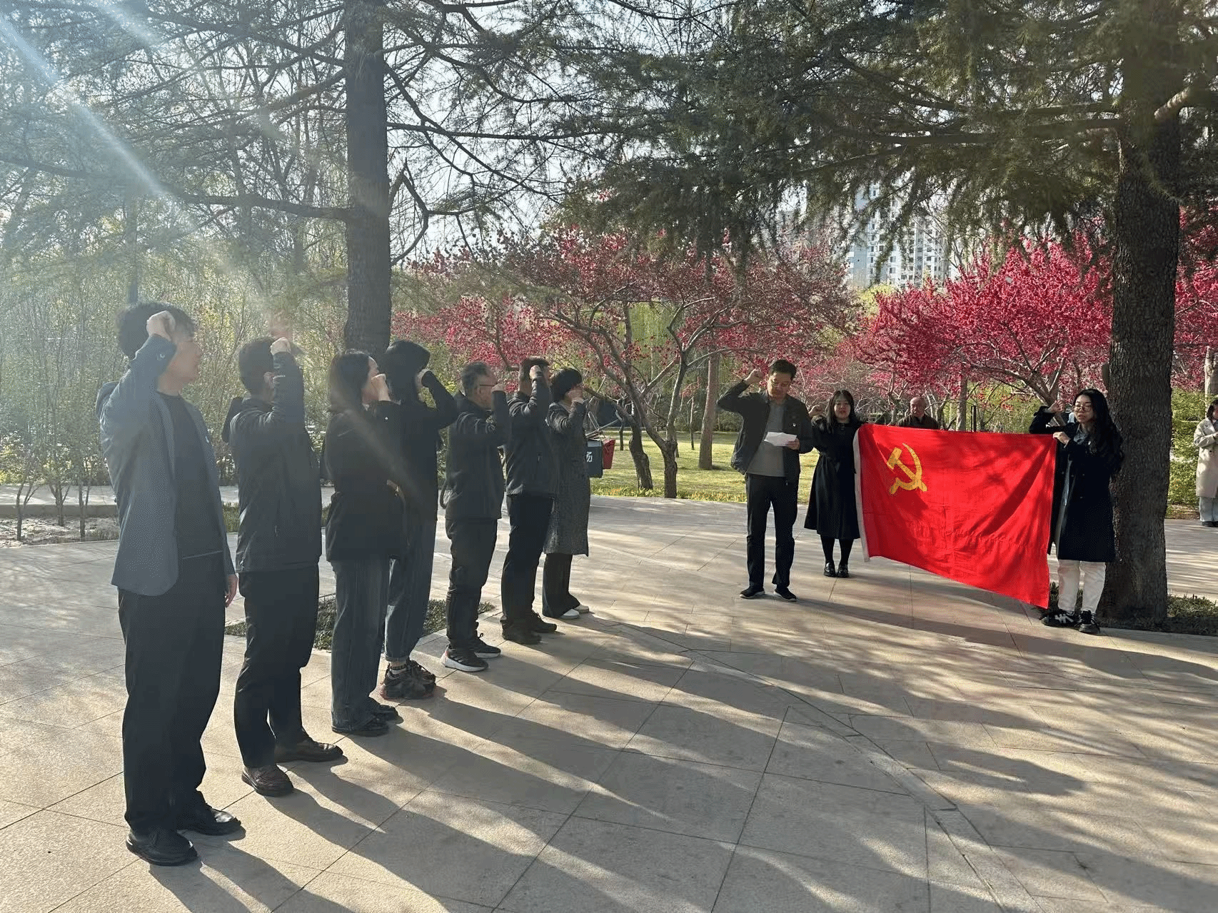 松柏青翠,烈士陵园庄严肃穆,革命烈士纪念碑巍然矗立。在革命烈士纪念碑前,全体人员庄严肃立,集体行默哀礼,向革命烈士敬献花篮,在鲜艳的党旗前重温入党誓词,所有人手捧菊花瞻仰革命烈士纪念碑,表达崇高的敬意、无限的哀思和深沉的缅怀之情。