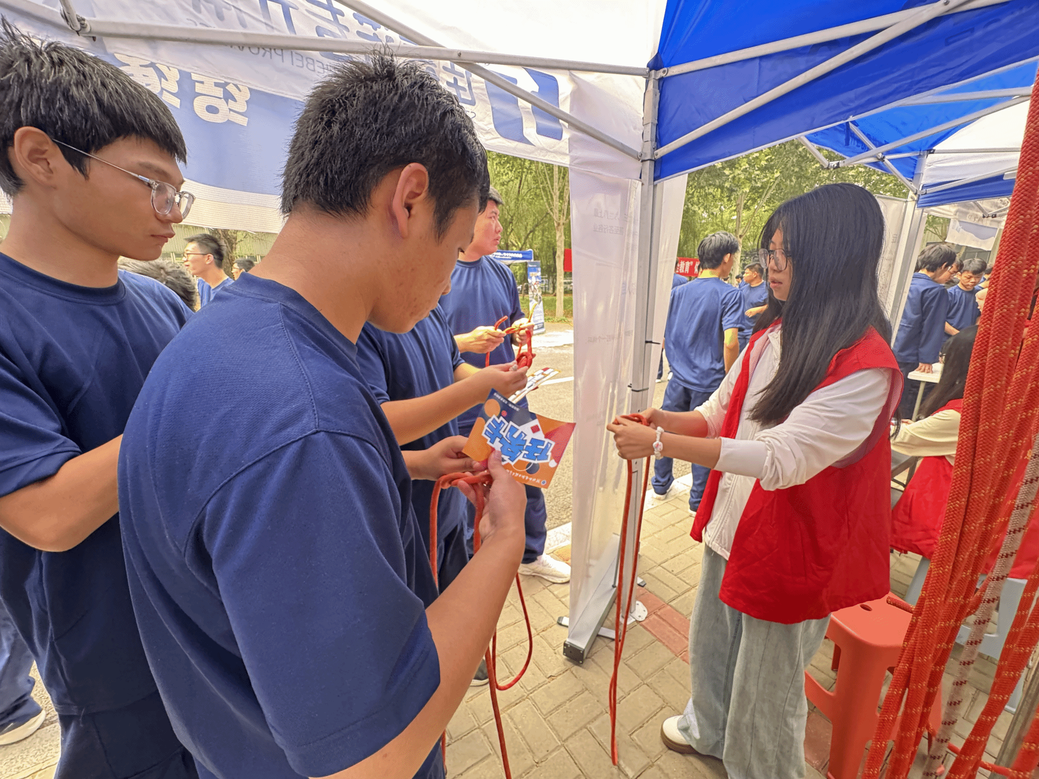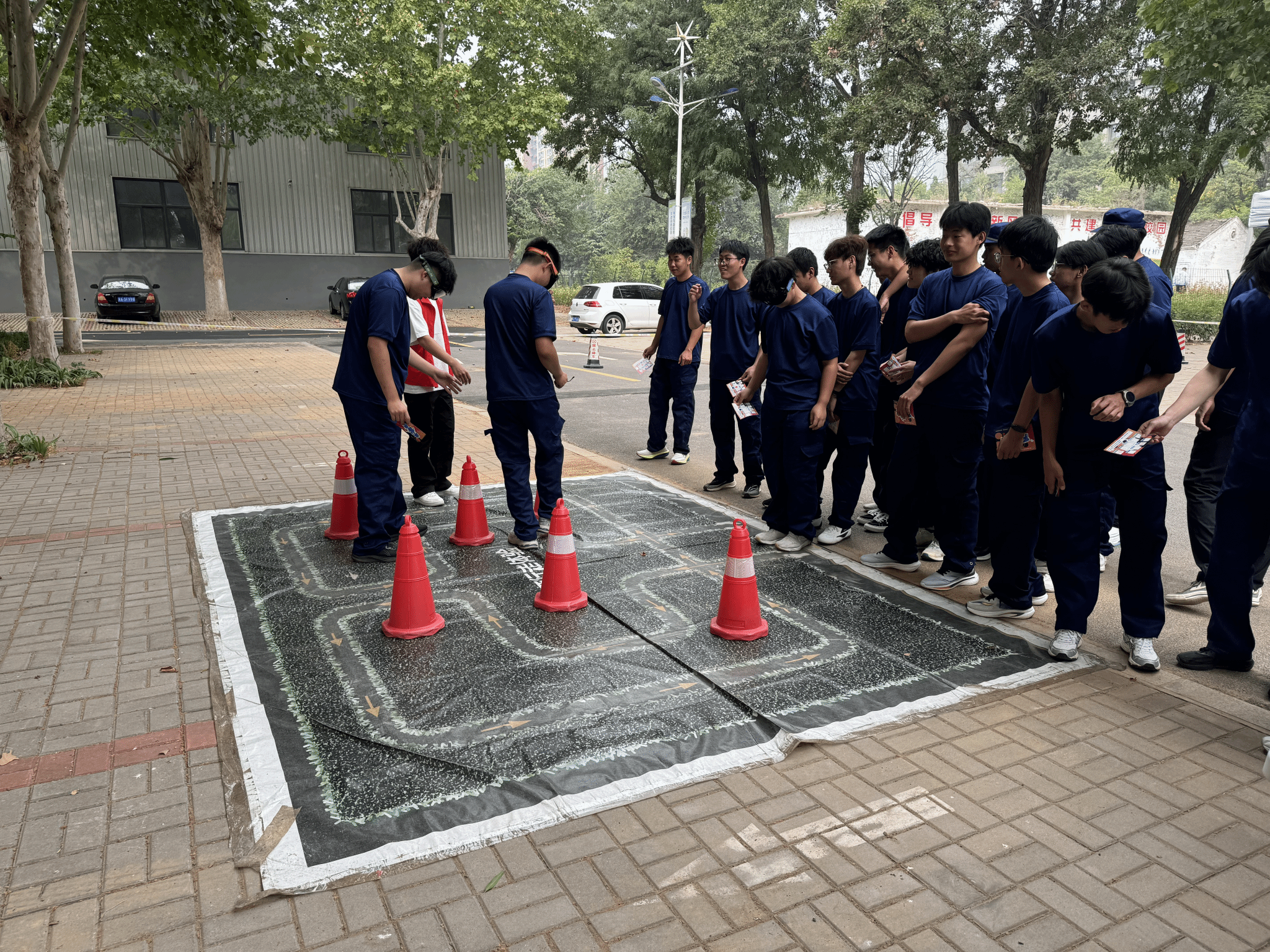 在醉酒行走体验区,借助模拟眼镜体验失衡与视觉模糊,使得新生直观感受酒驾风险,进一步筑牢交通安全防线。