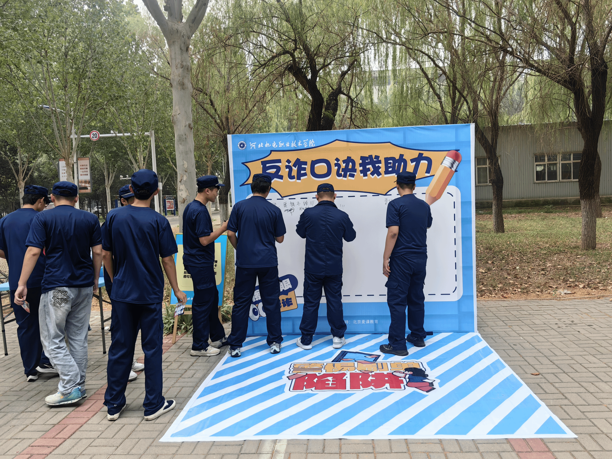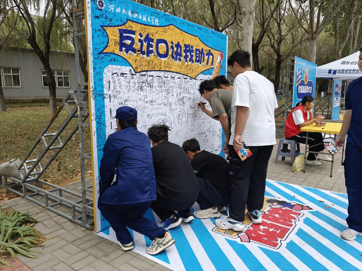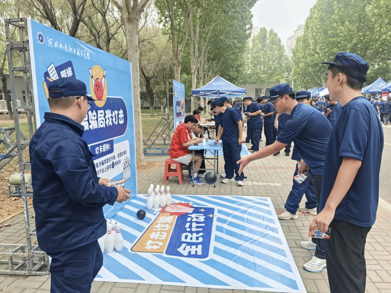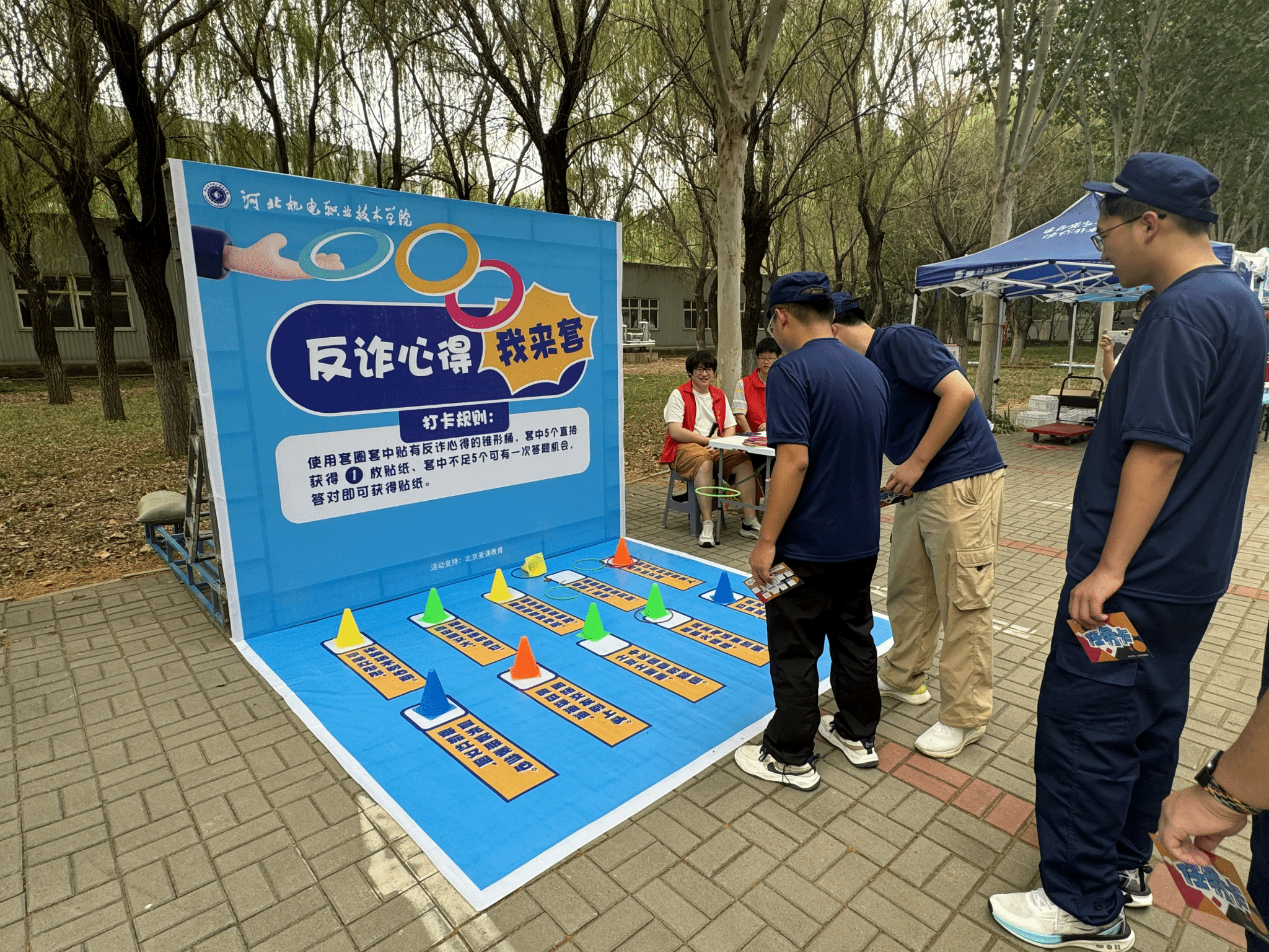 在反诈体验区,通过保龄球游戏,帮助新生了解常见的诈骗骗局及正确的处理方式;通过套圈游戏,帮助新生了解常见的反诈心得,强化防范意识;通过助力反诈口诀,帮助新生将反诈意识真正内化于心、扎根脑中。