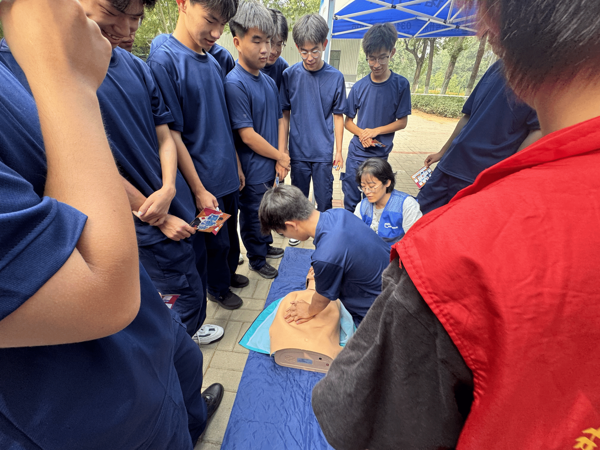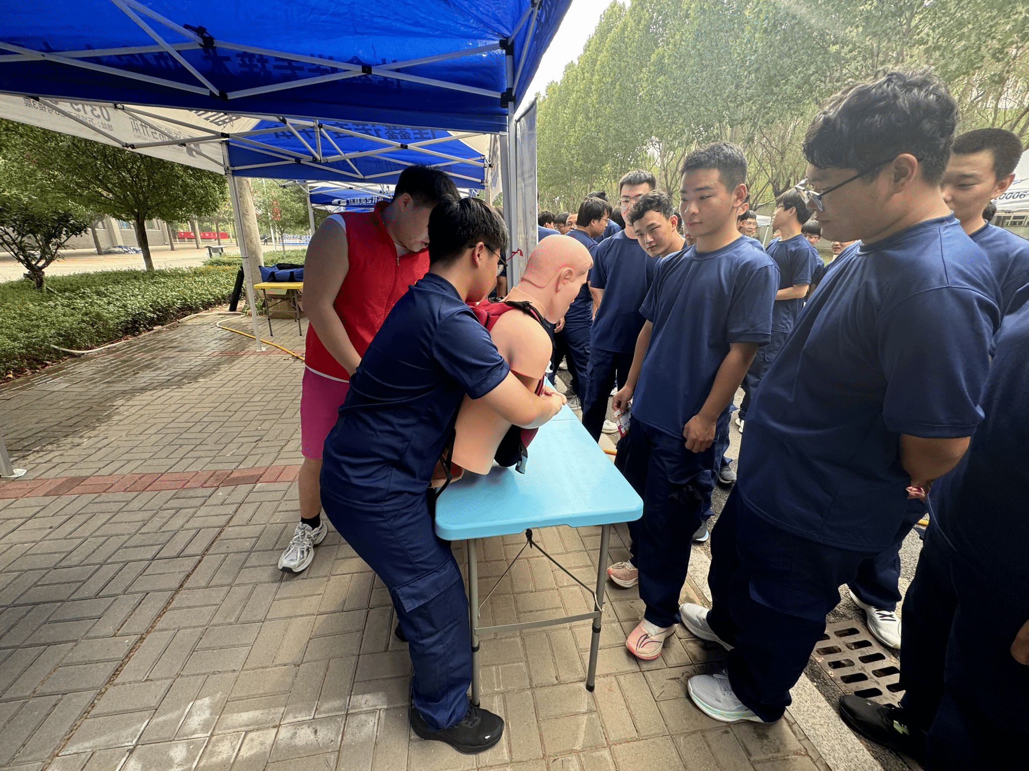 在心肺复苏和海姆立克急救法体验区,在培训师的指导下,新生反复练习急救动作,精准掌握急救要领。