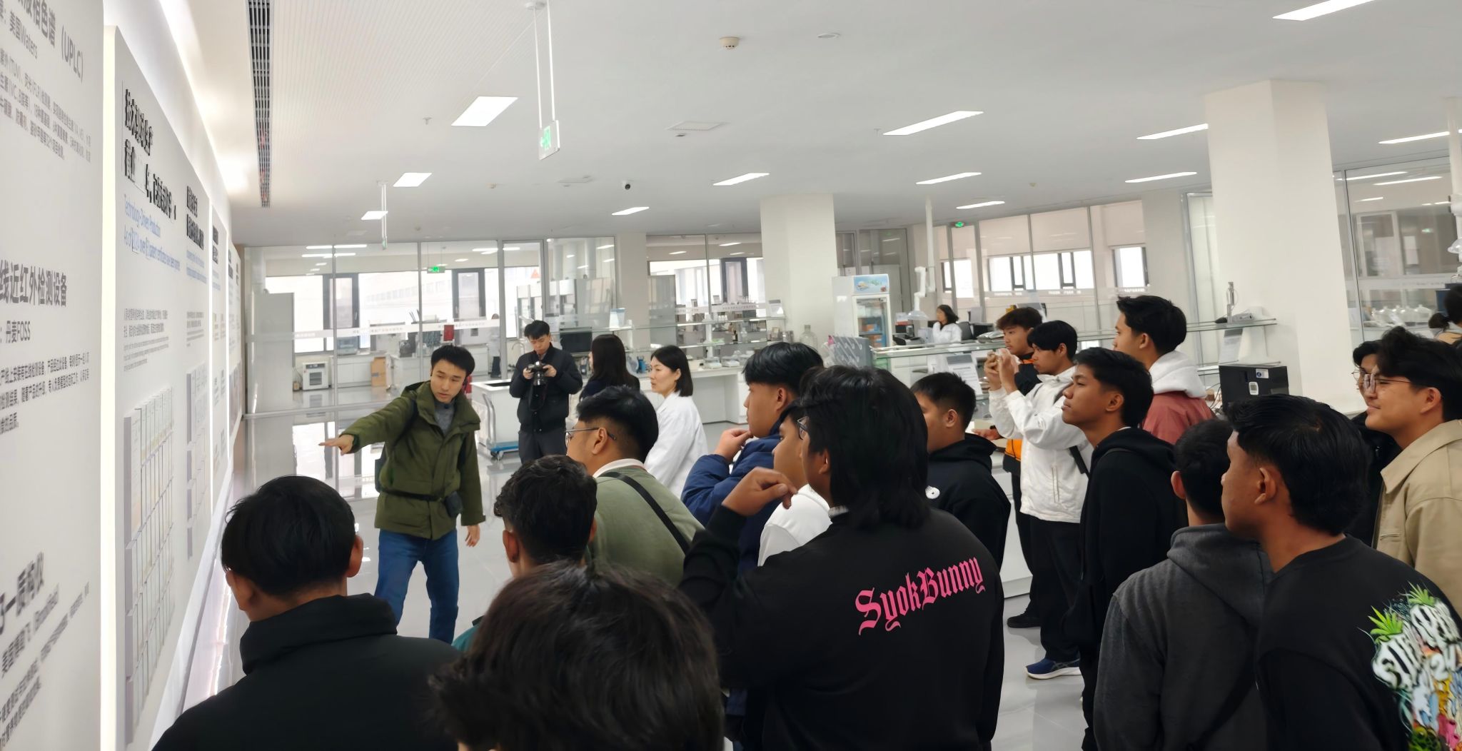 留学生们走进企业探寻产业密码,感知技术魅力。来到华兴宠物食品有限公司,学院老师及企业人员带领大家穿梭于生产车间与展示区域,近距离感受自动生产线、工业机器人等智能生产设备的运转工作场景。通过宠物食品研发、生产、质检全流程相关技术与知识的讲解,留学生们对企业的产品工艺、研发创新和智能化生产设备等产生浓厚兴趣,亲身感受了中国宠物食品产业的智能化生产与精细化管理。