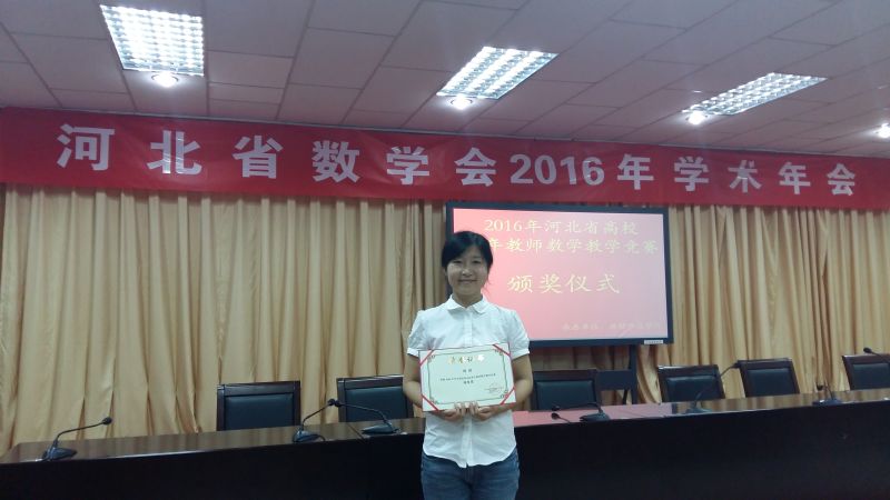 2016年7月18日-21日,河北省数学会2016年学术年会暨河北省高校青年教师数学教学竞赛在廊坊师范学院召开,我院基础课教学部杨瑞老师代表我院参赛,并荣获特等奖。 高校青年教师数学教学竞赛于19日下午拉开帷幕。参赛教师来自于河北省本科、...