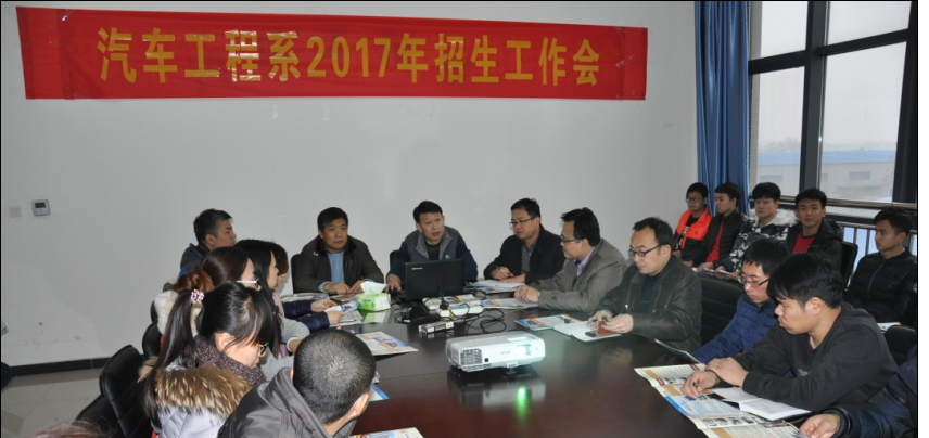 1月6日下午,在7号实训楼302召开了“汽车工程系2017年招生工作会”。副院长赵国增、继续教育培训部主任郝立宁、招生就业处长任立军、招生就业处赵勇老师和我系全体教职工、学生招生助手参加了会议。 耿书记通过精心准备的演示文稿,...
