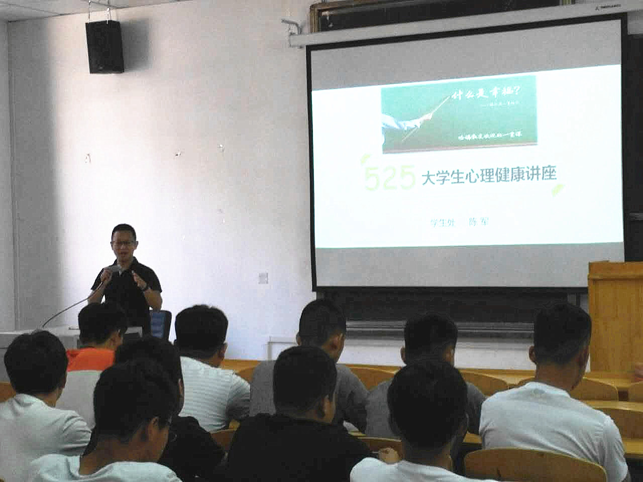 5月23日,由我院学生处团委举办的大学生心理健康活节专题讲座在教学楼A102成功举行。活动邀请心理健康辅导教师陈军针对全院学生做题为《做一个幸福的人》的讲座。 首先,陈老师向同学们解读了“5.25大学生心理健康日”...