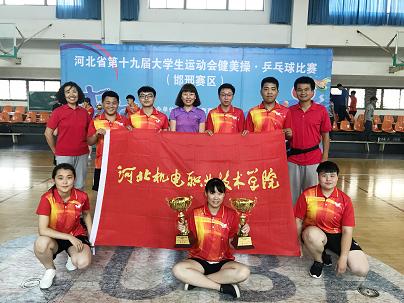 6月10日,河北省第十九届大学生运动会乒乓球、健美操(邯邢赛区)比赛在河北工程大学举行,我院健美操队荣获乙组团体一等奖、乒乓球队荣获乙组男、女团体二等奖。 比赛由河北省教育厅主办、河北省大学生体育协会协办、...