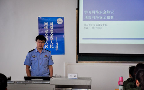 9月19日下午,学院在教学楼B座105举行了2017年网络安全宣传活动,本次活动联合邢台市公安局、中国建设银行邢台桥西支行、中国人民银行邢台市中心支行和邢台广播电视台等多家部门,举办主题为"提高网络风险防范意识、快乐学习、...