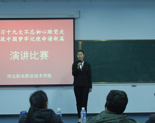 为深入学习宣传贯彻党的十九大精神,2017年12月12日下午,由院团委主办的“学习十九大不忘初心跟党走,共筑中国梦牢记使命谱新篇”主题演讲比赛在教学楼C108室举行。各级学生干部、学生代表和社团成员观看了比赛。 经过前期选拨,...