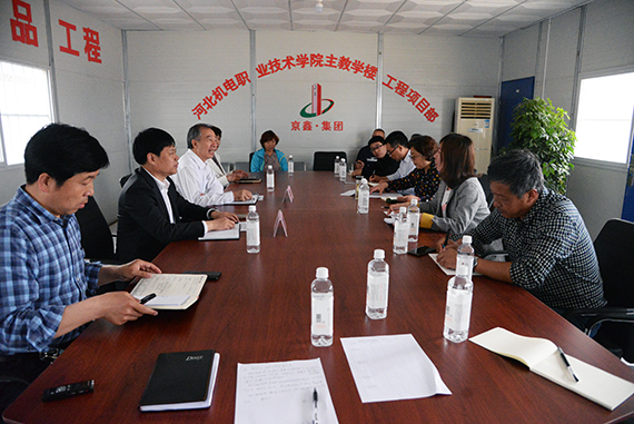 4月28日上午,学院在主教学楼工程项目部召开主教学楼第一次工地会议,施工单位、监理单位、跟踪审计单位及学院相关人员参加了会议。会议由副院长张兆隆主持,院长傅恒杰出席会议并讲话。 项目经理张文君代表京鑫建设集团有限公司对工程施工组织安排进行了介绍,...