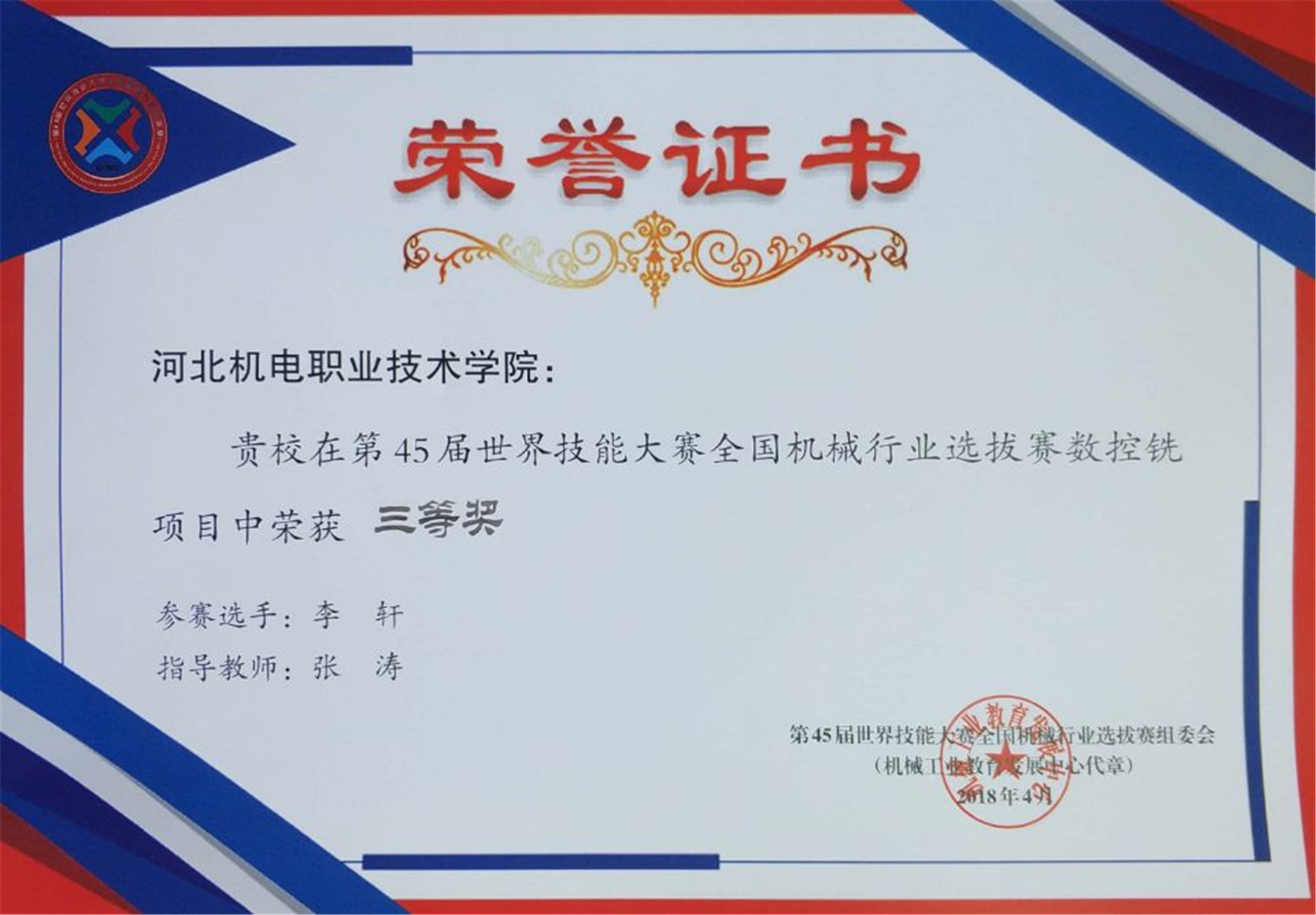我院选手在第45届世界技能大赛全国机械行业选拔赛获佳绩