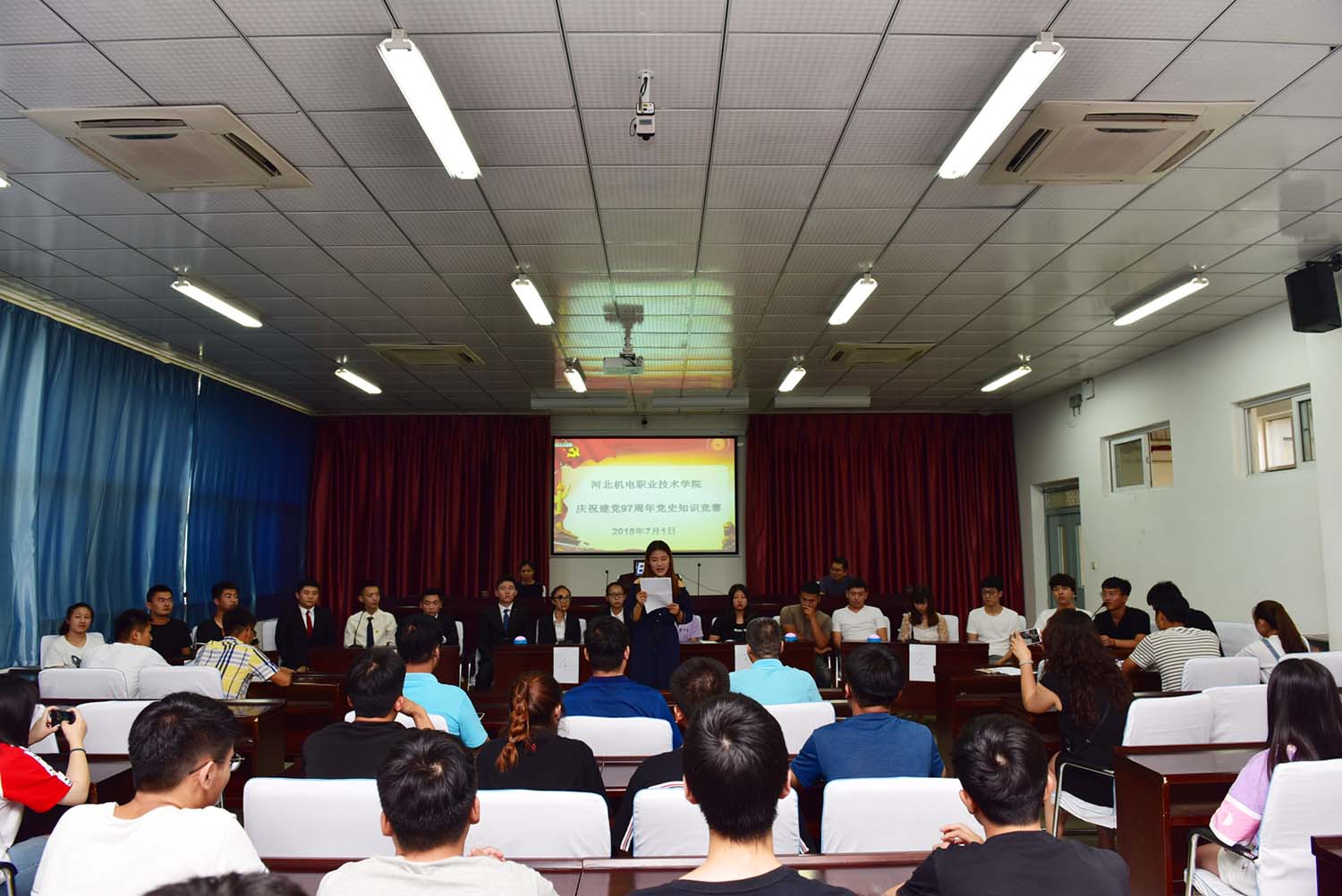 7月4日下午,河北机电职业技术学院庆祝建党97周年党史知识竞赛决赛在教学楼C105举行。思想政治理论教学部部长周景辉、学生工作部部长周卫忠、思政部教师、学生辅导员及各系学生代表100多人参加了此次活动。 为隆重庆祝建党97周年,...