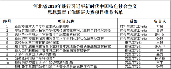 我院11个项目获批2020年践行习近平新时代中国特色社会主义思想冀青工作调研大赛立项