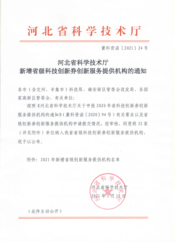 我院获批河北省科技创新券创新服务提供机构