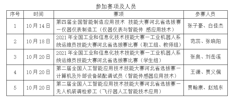 近日,我院电气工程系师生团队在由河北省工业和信息化厅牵头组织的“2021年全国工业和信息化技术技能大赛——工业机器人系统运维员技能大赛河北省选拔赛”,河北省人力资源和社会保障厅牵头组织的“第二届全国人工智能应用技术技能大赛河北省选拔赛”...