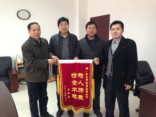 3月7日 一大早,冀中能源的职工王军峰师傅手捧鲜红的写着“为人师表,拾金不昧”字样的锦旗来到河北机电职业技术学院基建办,“我向你们单位冀老师表示感谢,上周日晚上他捡到了我丢失的钱包,并归还给了我,也希望学院对他进行表扬。...