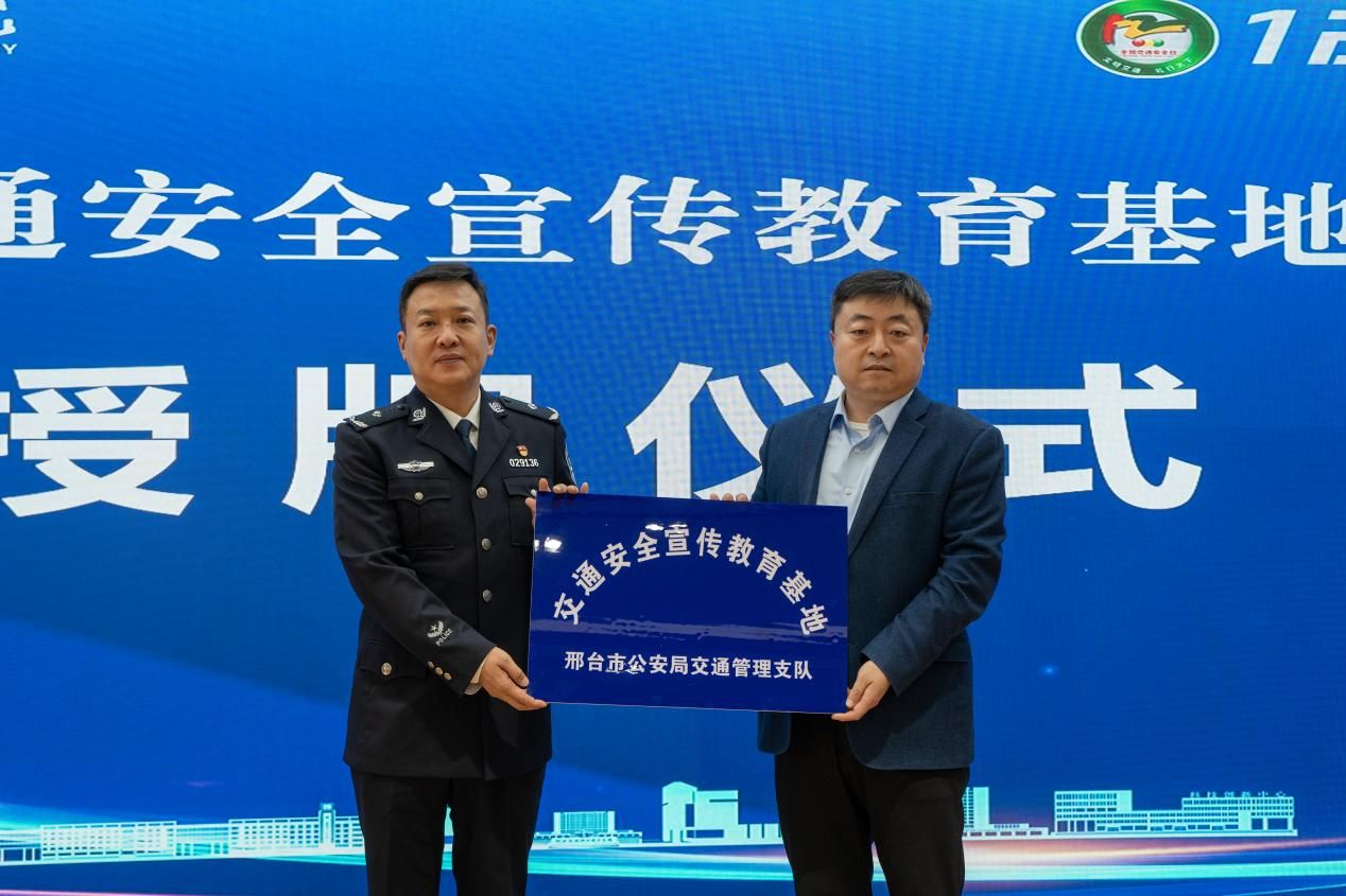 魏强在讲话中发出倡议,呼吁大家争做文明交通的“守护者”“践行者”和“传播者”,共同营造守法明礼的出行风尚。随后,他代表支队向我校授予“邢台市交通安全宣传教育基地”牌匾,张能云上台郑重接过牌匾,标志着该基地正式落地启用。
