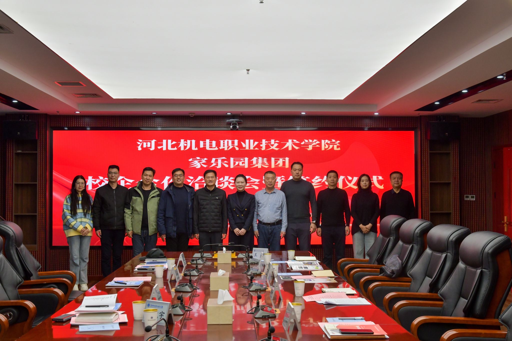 在与会人员的见证下,校企双方签署了《河北机电职业技术学院与家乐园集团校企合作协议书》。