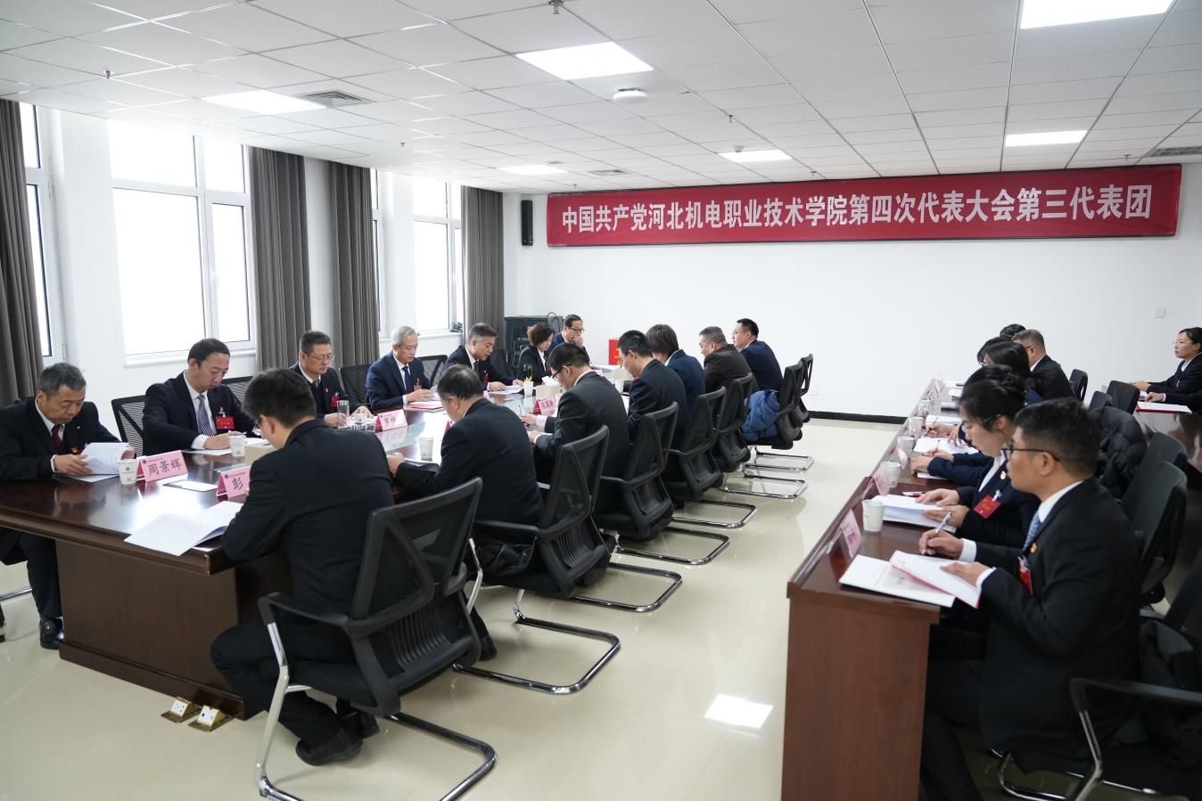 按照大会日程,中国共产党河北机电职业技术学院纪律检查委员会工作报告、党费收缴使用和管理情况报告采取书面形式提交大会审议。各代表团对党委工作报告、纪委工作报告、党费收缴使用和管理情况报告进行分组讨论,各代表团还讨论了大会选举办法(草案)和有关决议,酝酿党委、纪委委员候选人预备人选名单。大会主席团审议通过了大会选举办法(草案)和有关决议,确定了党委、纪委委员候选人预备人选名单,在听取了各代表团讨论情况后对第三届党委工作报告和纪委工作报告进行了充分讨论。