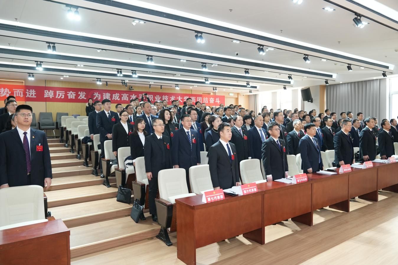 大会听取和审议了党委书记王晓凤同志代表中国共产党河北机电职业技术学院第三届委员会作的题为《顺势而进 踔厉奋发 为建成高水平职业技术大学而团结奋斗》的工作报告。