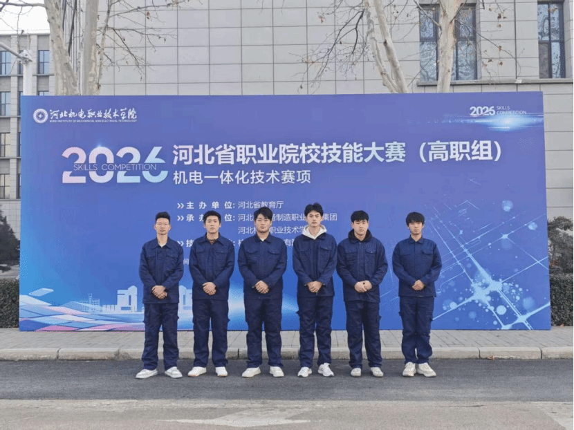 2025年12月26日至28日,由河北省教育厅主办,河北省装备制造职业教育集团、河北机电职业技术学院承办的2026年河北省职业院校技能大赛(高职组)“机电一体化技术”与“智能电梯装配调试与检验”赛项在河北机电职业技术学院成功举办。“机电一体化技术”赛项吸引全省17所高职院校26支队伍参赛,我校两支参赛队伍分获一、二等奖;“智能电梯装配调试与检验”赛项汇聚全省9所高职院校42名选手同台竞技,我校学生成功斩获一、二等奖。