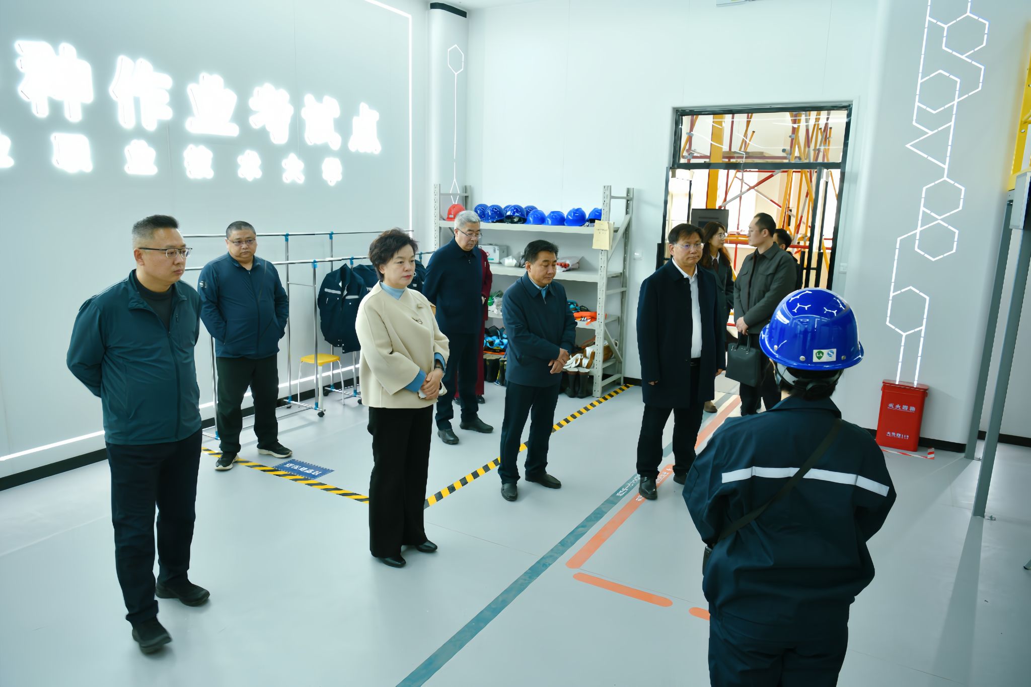 王晓凤一行先后实地参观了安全生产培训基地、材料工程学院、人工智能学院、智能制造学院等实践教学场所,详细了解河北工业职业技术大学在实训基地建设、实践教学组织、产教深度融合、专业群建设等方面的先进经验与运行模式。