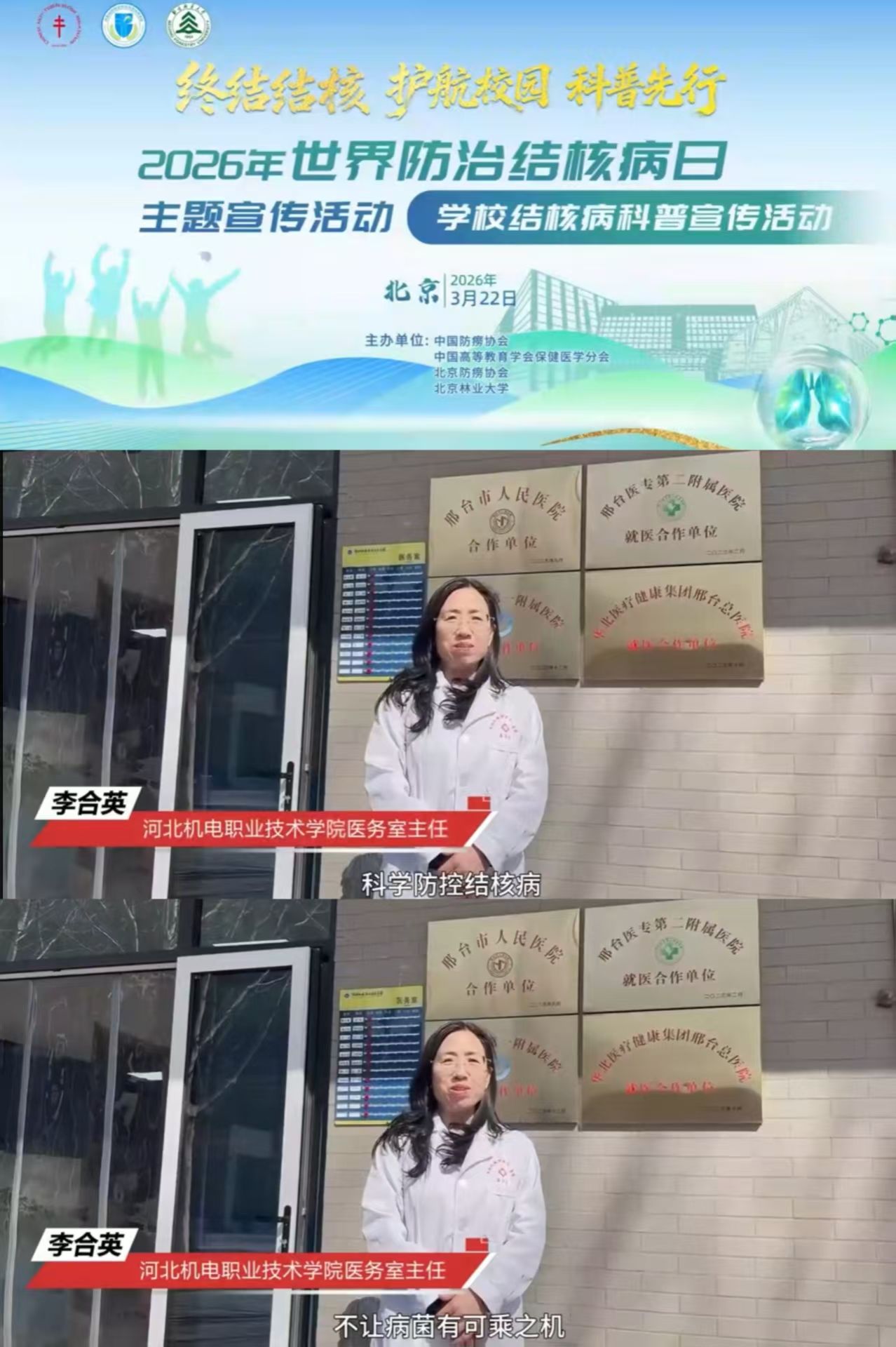 2026年3月24日是第31个世界防治结核病日,作为邢台市唯一一所全国健康学校,我校主动担当、多措并举,积极参与市级与国家级结核病防治宣传活动,充分发挥高校示范引领作用。