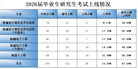 近日,2026年全国硕士研究生招生考试成绩公布,我校共建本科专业学子凭借扎实的专业知识和不懈的努力,在此次考试中取得了令人鼓舞的成绩。共建本科专业2026届毕业生共有373人,其中122人报考研究生,58人上线,上线率15.55%,报考人数上线率达47.54%,各专业上线情况整体良好,充分展现了学院优良的学风建设和人才培养质量。