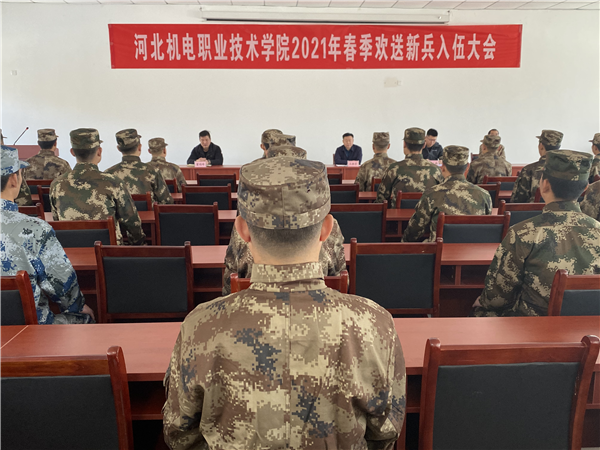 3月22日上午,我院2021年新兵入伍欢送大会在信都区武装部集训中心会议室隆重举行。学院党委副书记王振京、信都区人武部部长武治邦、信都区武装部征兵科科长曹学坤、学生工作部相关人员及全体2021年春季入伍学生参加了欢送大会。