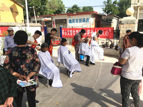 当天,全村100多位65岁以上的老人欢聚一堂、热闹非凡。驻村工作队队员们和志愿者们一起和面、剁馅、包饺子,并同老人一起听音乐,吃饺子、蛋糕、水果。志愿者们还为村里的老人们理发、按摩颈背、修剪指甲、洗脚等活动。