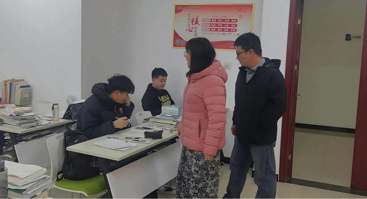 活动当天,教师们走进自习室和图书馆等备考专区,与正在紧张复习的学子们亲切交流。仔细询问了同学们的备考情况、复习进度和心理状态,耐心解答大家在备考过程中遇到的困惑,并分享了自己当年的学习经验。老师们表示,考研不仅是对专业知识的检验,更是对意志品质的磨砺,学校永远是你们最坚实的后盾,希望你们以最佳状态迎接挑战,实现自己的深造梦想。