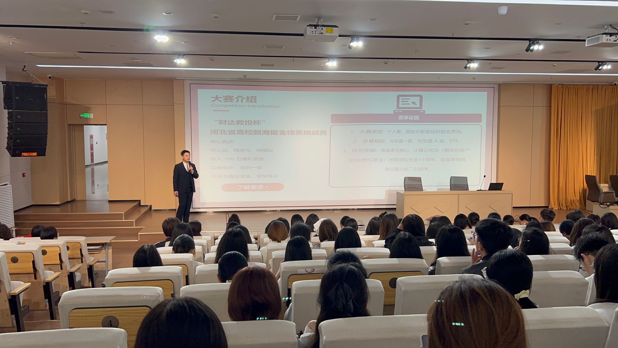 为深化产教融合,提升学生金融素养与实践能力,在建校70周年之际,4月10日,财达证券邢台兴达路营业部财富总监苑振鹏应邀来校,在德龙报告厅作题为“用游戏逻辑读懂资本市场”的专题讲座,正式拉开了“财达教投杯”河北省高校股海掘金精英挑战赛校园宣讲序幕。