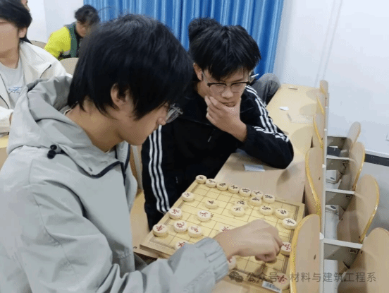 为丰富校园文化生活,弘扬中华优秀传统文化,培养学生的逻辑思维能力与专注品质,近日,材料与建筑工程系在晚自习教室举办了“雅风杯”棋类比赛。本次活动设有象棋赛(男生组)和五子棋赛(女生组)两个项目,吸引了来自各班级的学生积极报名参加。