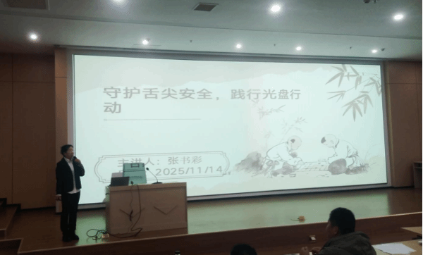 11月14日下午,“守护舌尖安全,践行光盘行动”主题知识讲座在德润楼德龙报告厅顺利举行。活动特邀知名餐饮企业食品安全讲师担任主讲,聚焦大学生群体的饮食特点与习惯,深入浅出地讲解了膳食营养搭配、常见食品安全风险识别以及节约粮食的重要意义,引导同学们树立健康饮食观念,增强食品节约意识。
