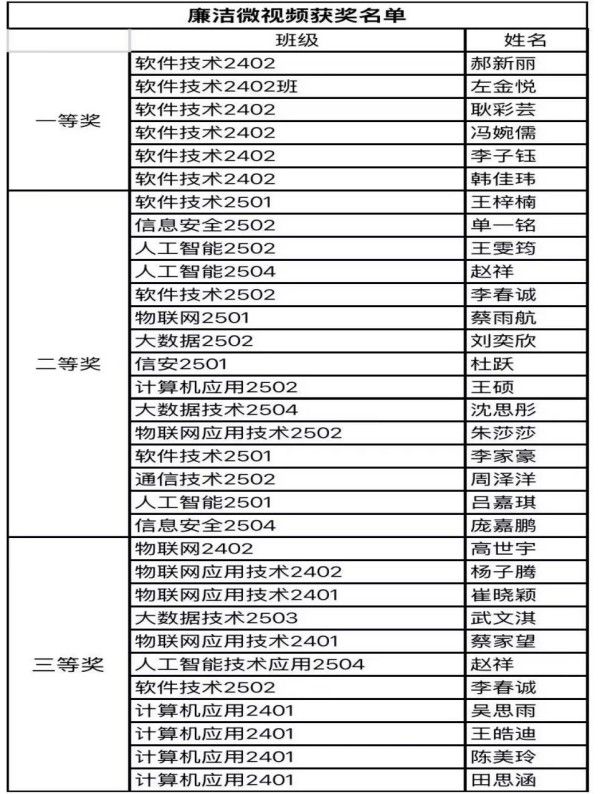为深入推进校园廉洁文化建设,营造风清气正的育人环境,培养学生的廉洁意识和道德品质,树立清正廉洁的的价值理念。信息工程系举办:“清风满校园,廉洁沁人心”为主题的摄影、微视频作品征集活动已圆满收官。