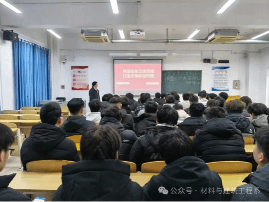 为深入推进校园文明建设,强化学生卫生安全意识,营造安全整洁、和谐文明的校园环境,12月26日下午两点,材料与建筑工程系在各班晚自习教室开展“共筑安全卫生防线,打造文明和谐校园”主题团日课。