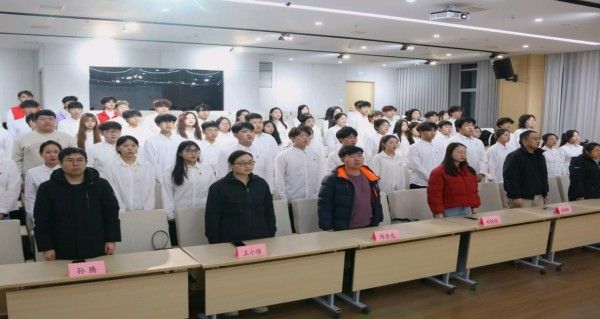 激昂的团歌旋律响起,全体团员齐声合唱,入团仪式在激昂的《光荣啊,中国共青团》团歌声中圆满结束,歌声中饱含着对共青团的无限热爱与对未来的美好憧憬。