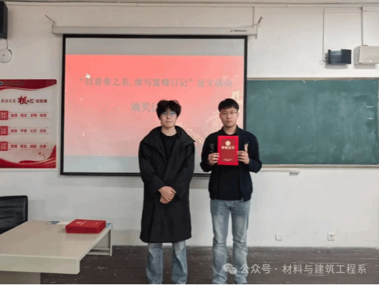 为深入挖掘雷锋精神的时代内涵,引导广大同学感悟雷锋精神、讲述雷锋故事、践行雷锋行动,用文字传递向上向善的力量。3月23日晚上,材料与建筑工程系举办的“以青春之名,续写‘雷锋日记’”主题征文比赛颁奖仪式圆满结束。