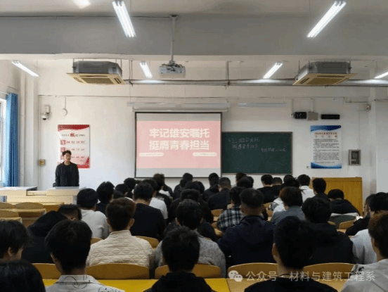为深入学习贯彻习近平总书记关于雄安新区建设的重要指示精神,引导广大同学感悟时代使命、厚植家国情怀,以青春之力践行初心、担当作为,4月10日下午,材料与建筑工程系组织开展“牢记雄安嘱托,挺膺青春担当”主题团课活动,全体同学齐聚一堂,共学嘱托精神,共话青春担当。