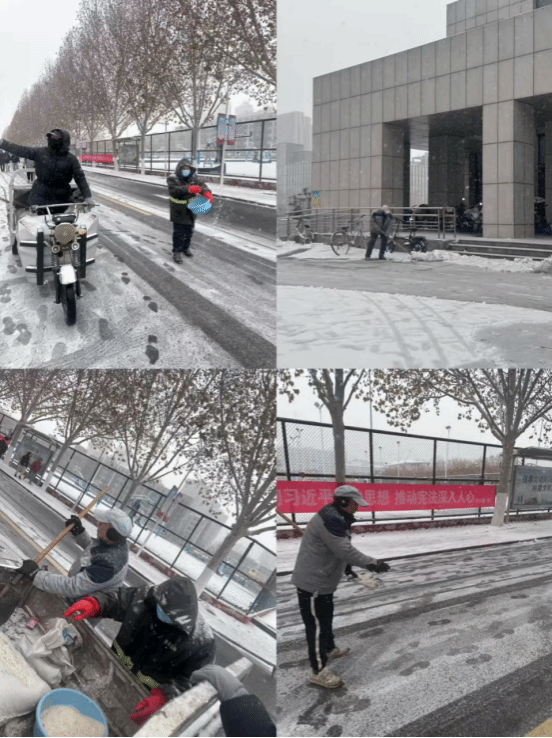 受寒潮天气影响,12月12日我市迎来大范围降雪,校园内积雪结冰给师生出行安全带来隐患。我校后勤与资产管理处闻令而动,第一时间采取多项措施开展除雪作业工作。
